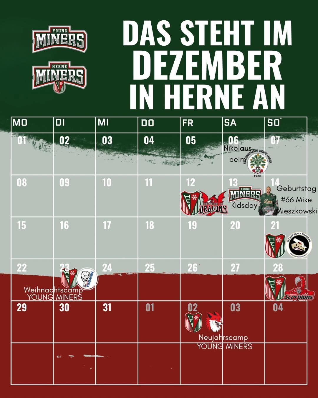 Während man am Freitag, den 19.12.2025, deutlich mit 1:7 bei dem Tabellenführer verlor, zeigten die Miners gegen Erfurt am Sonntag und Hamm am Dienstag sehr couragierte Leistungen, belohnen konnten sich die Grün-Weiß-Roten am Ende aber nicht. Aus den drei Spielen konnte man schließlich nur einen Punkt ergattern.