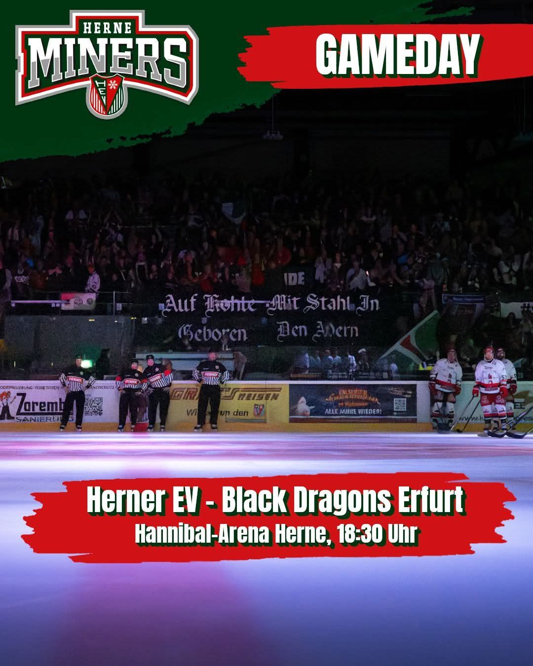 Nach dem Spiel in Hannover zeigten die Herner zu Beginn gegen Erfurt eine Reaktion und erspielten sich einige Torchancen. Als der Erfurter Topscorer, Santeri Haarala, jedoch in der 4. Spielminute kurz zu viel Platz hatte, war es Erfurt, die sich als erstes auf die Anzeigetafel bringen konnten. Weiterhin war aber Herne die spielbestimmende Mannschaft, die dann in Minute 10 nach einem Fehlpass der Black Dragons verdient durch Raik Rennert zum 1:1 ausgleichen konnte.